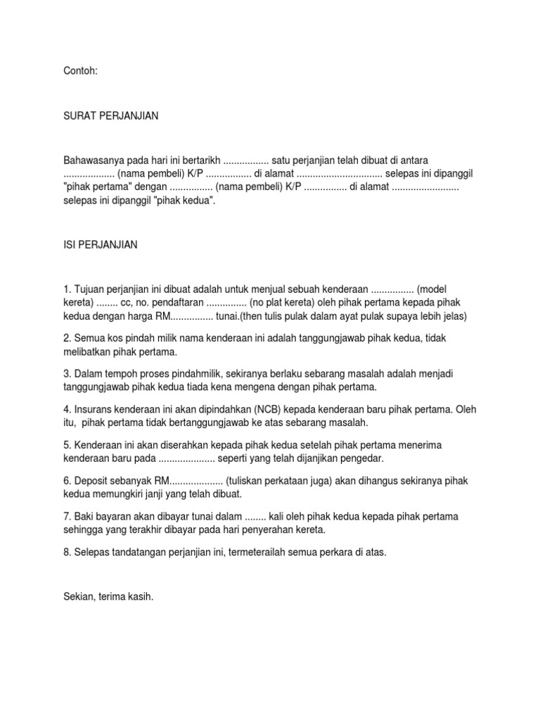 Contoh Surat Perjanjian Jual Beli Kenderaan Pdf